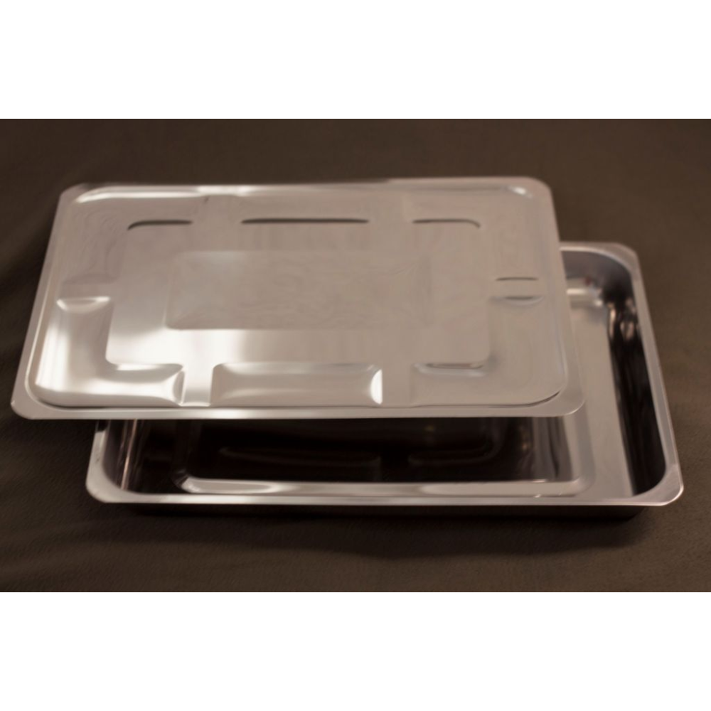 Лоток прямоугольный ЛМПрК-200 с крышкой из нержавеющей стали.