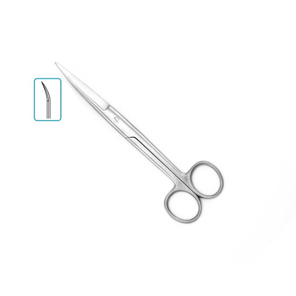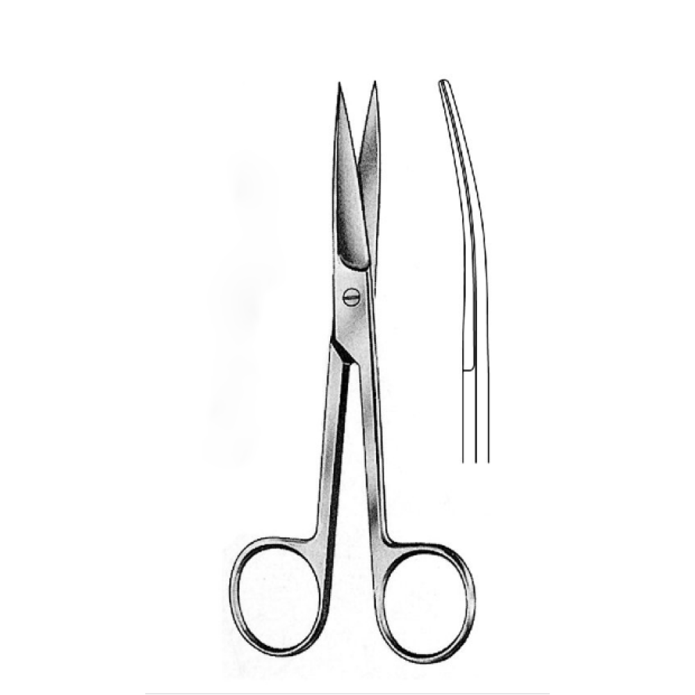 Ножницы с двумя острыми концами 140 мм вертикально-изогнутые — медицинские хирургические ножницы, используемые для рассечения мягких тканей при хирургических вмешательствах. Могут использоваться для разрезания шовного и перевязочного материалов. Оба рабочих кончика острые, кольцевые рукоятки.