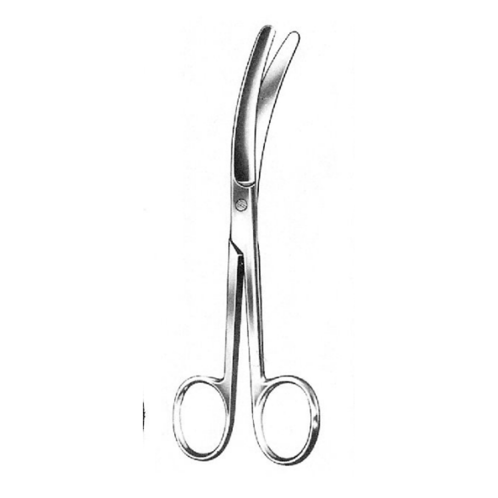 Ножницы для пересечения пуповины горизонтально-изогнутые 160 мм — акушерские ножницы с широкими изогнутыми по ребру рабочими частями. Концы ножниц тупые, чтобы не травмировать ткани.