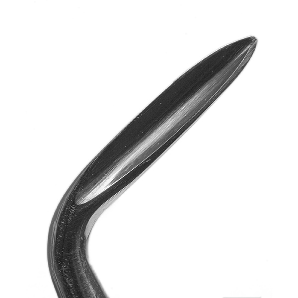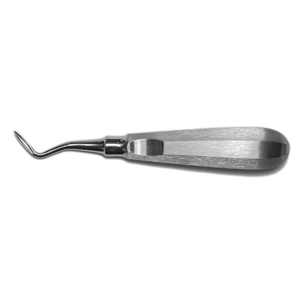 Элеватор зубной с двойным изгибом правый используется для удаления зубов и их корней. Рабочая часть желобоватая, изогнутая, остроконечная. Рукоятка грушевидная, гранённая.
