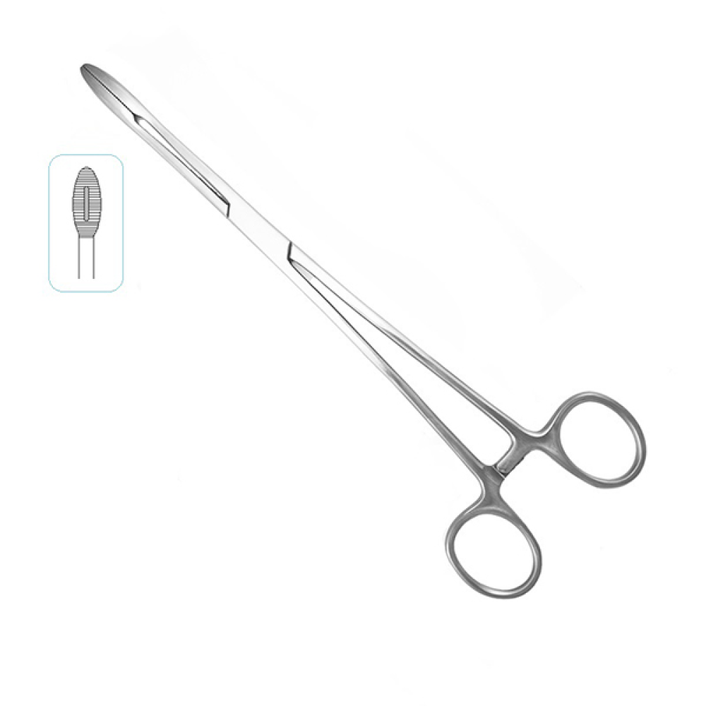Корнцанг прямой 260 мм (аналог Щ-67 и Щ-20-1) — это хирургический зажимной инструмент с кольцевидными рукоятками и с массивными овальными (оливообразными) рабочими частями. На рабочих губках имеется насечка для надежного захвата и удержания тампонов, дренажей и прочих материалов. Длинная рабочая часть для удобства использования.