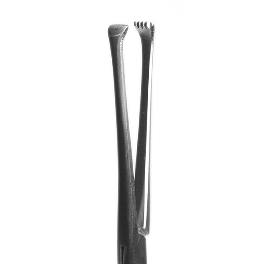 Зажим для захватывания кишечной стенки 152 мм (аналог З-24) предназначен для накладывания на полые органы (кишку, желудок) для перекрывания просвета, выполнения разреза стенки и ограничения повреждённого участка. Зажим Алиса имеет прямые рабочие части 5*6 зуба, кольцевидные рукоятки и кремальеру.