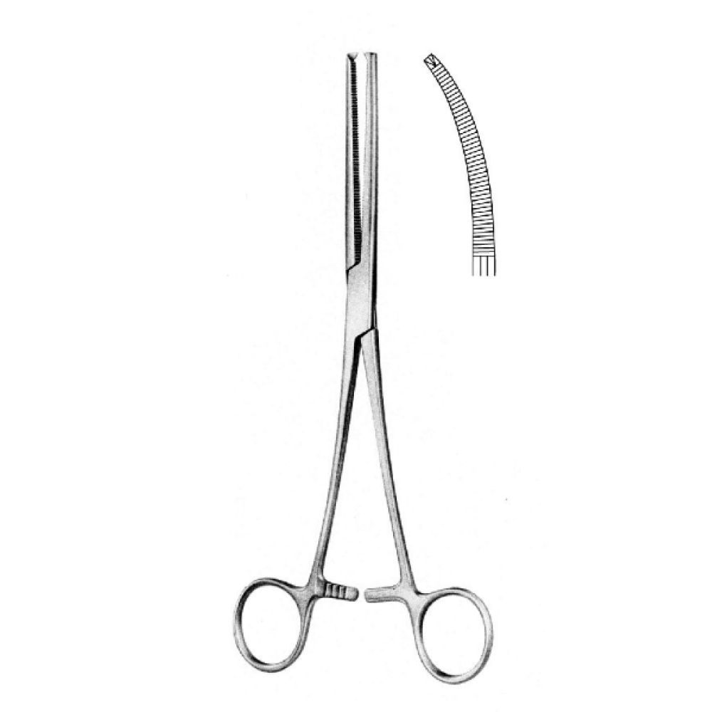 Зажим кровоостанавливающий 1x2 зубый, зубчатый изогнутый, 150 мм (Кохер)