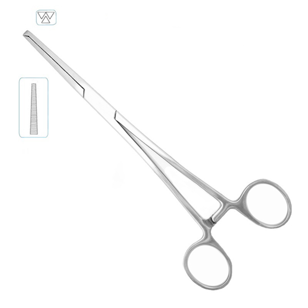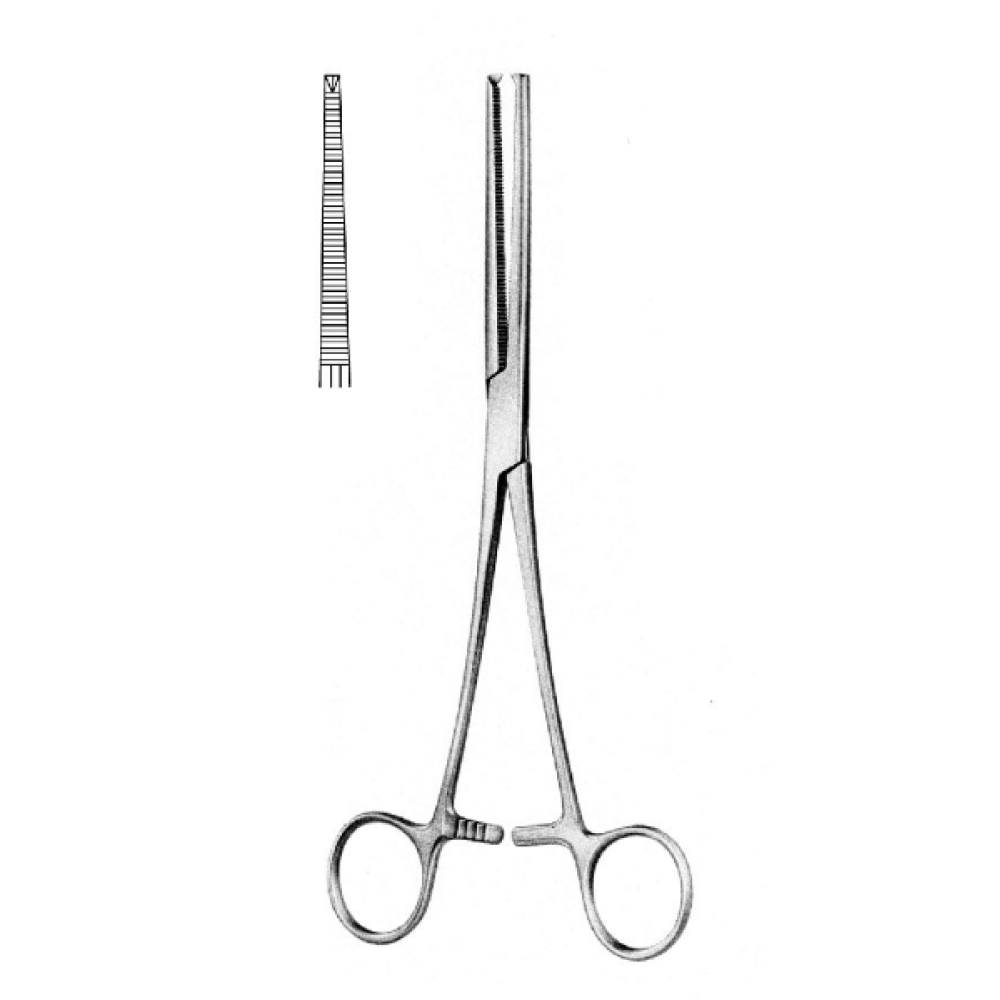 Зажим кровоостанавливающий 1x2 зубый, зубчатый прямой, 200 мм (Кохер)