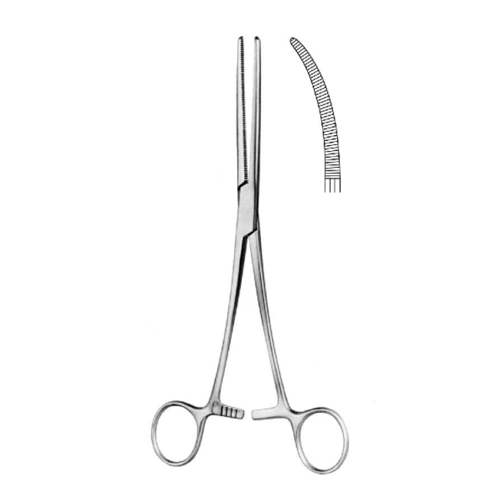 Зажим кровоостанавливающий зубчатый изогнутый, 250 мм (Бильрот)